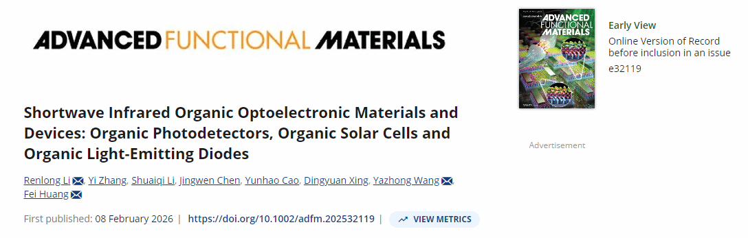 近日,我校化学化工学院光电材料与计算化学团队李仁龙博士,继2025年10月在国际顶级期刊《Advanced Functional Materials》(影响因子19)发表文章后,再次以第一作者兼通讯作者身份在该期刊上发表题为“Shortwave Infrared Organic Optoelectronic Materials and Devices: Organic Photodetectors, Organic Solar Cells and Organic Light-Emitting Diodes”的论文。河南科技学院为第一通讯单位。