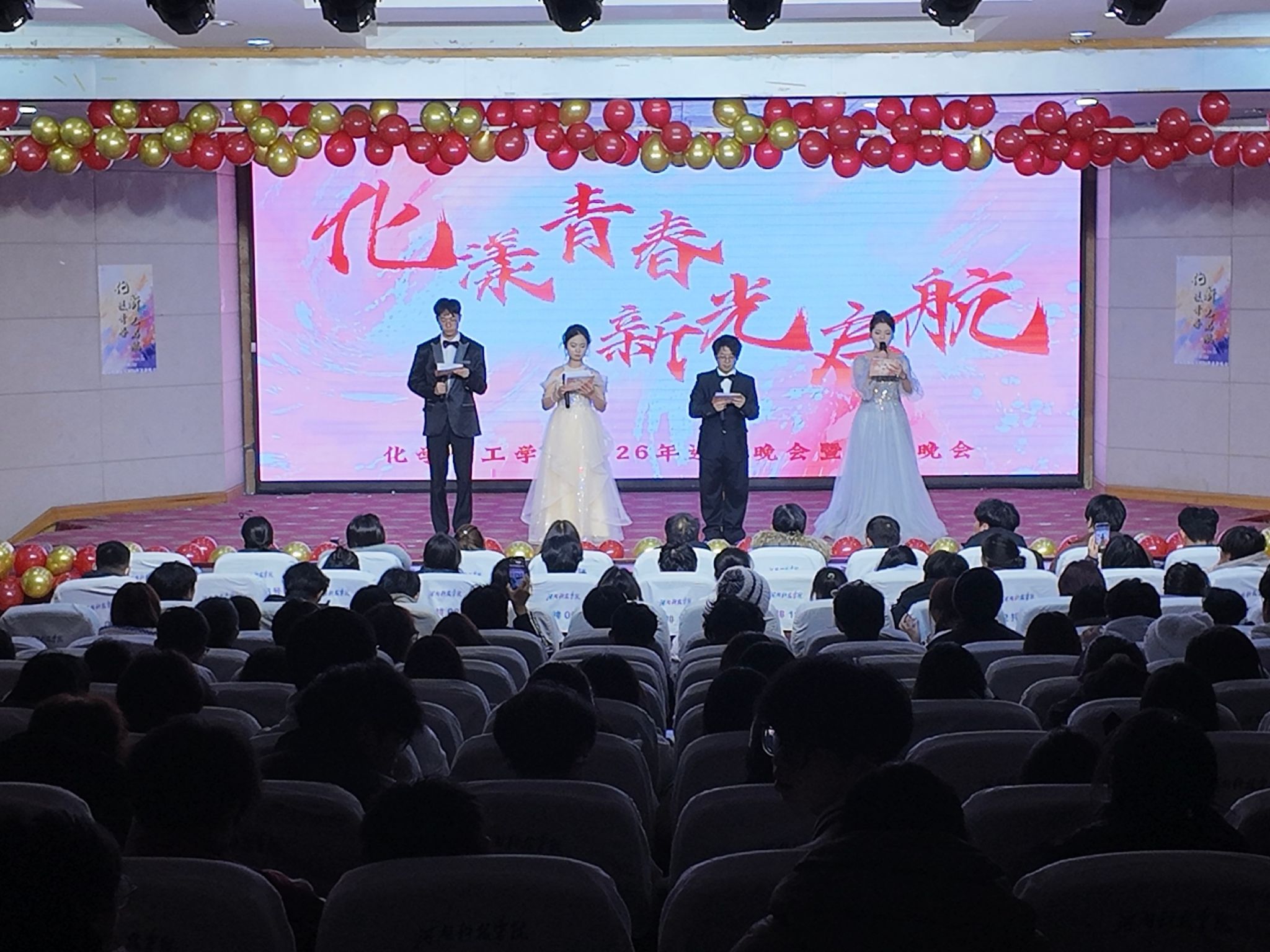 为迎接2025级新生、营造温馨向上的学院氛围,助力新生融入集体、展示风采,12月19日晚,化学化工学院“化漾青春,新光启航”迎新晚会在图教201隆重举行。学院领导、师生代表与全体新生欢聚一堂,共同观赏了这场精彩纷呈的青春盛宴。